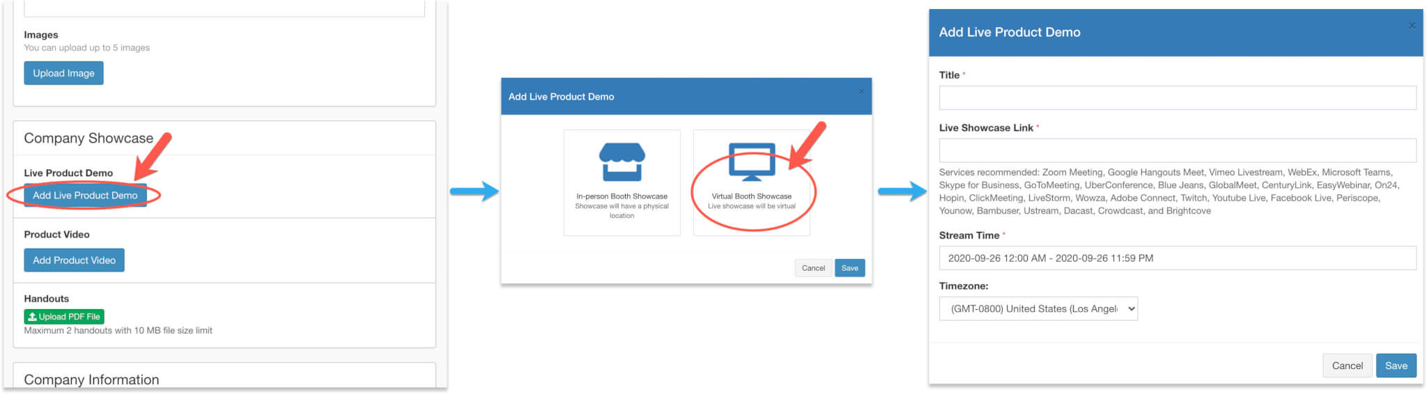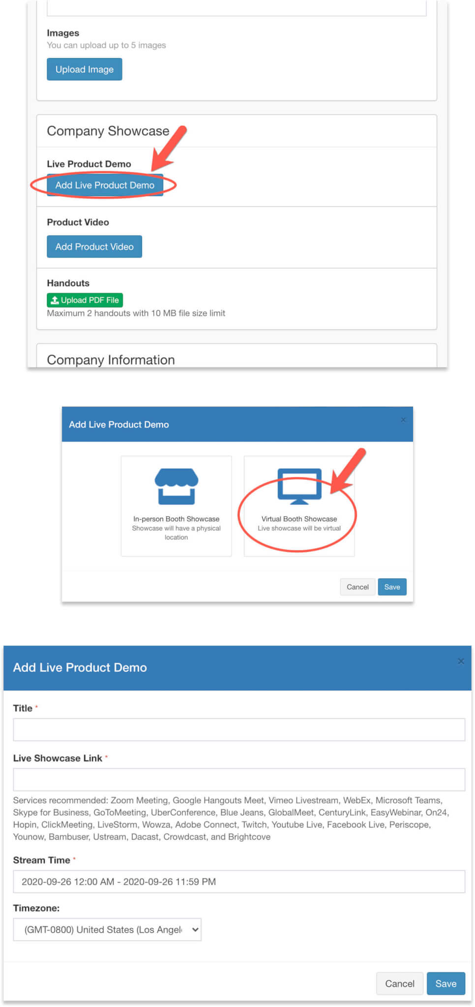 - Under the Exhibitor Hub section, select Showcase Stream and Video.