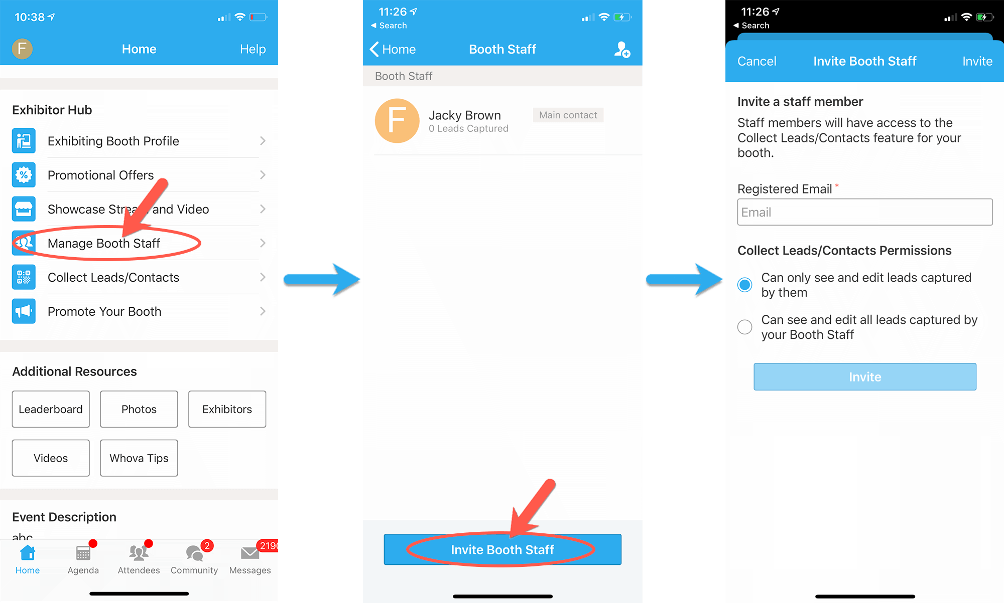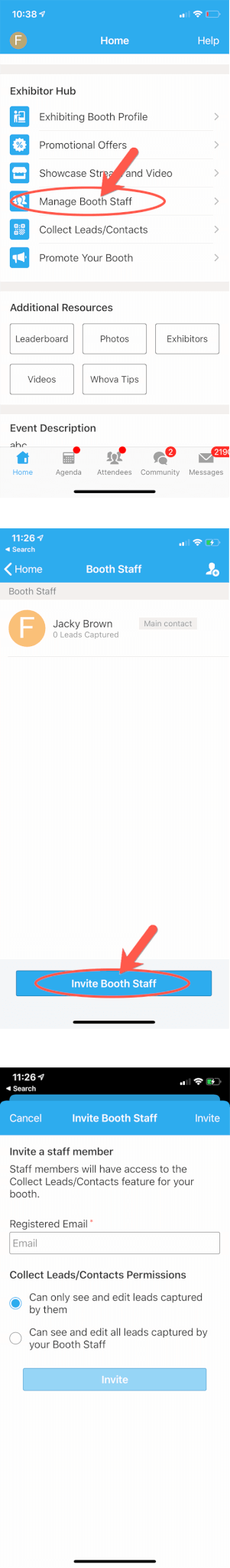 - Click Invite Booth Staff at the bottom of the screen.