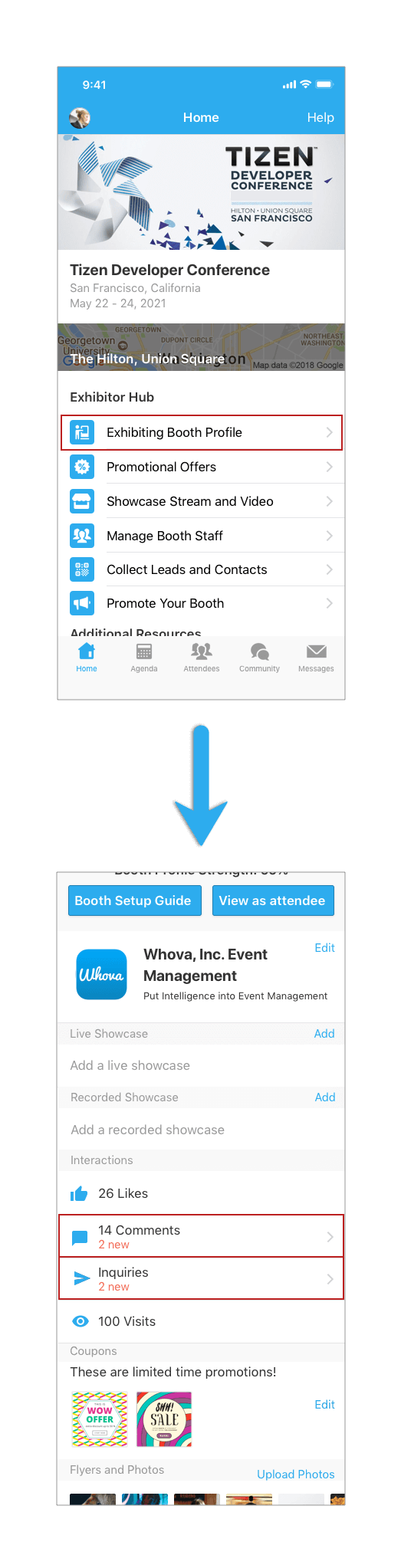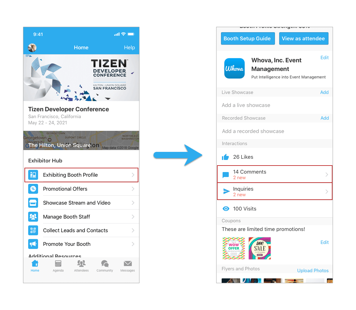 - If an attendee claims your promotional offer by tapping Sign up for deals & offers, she/he is added to your leads.