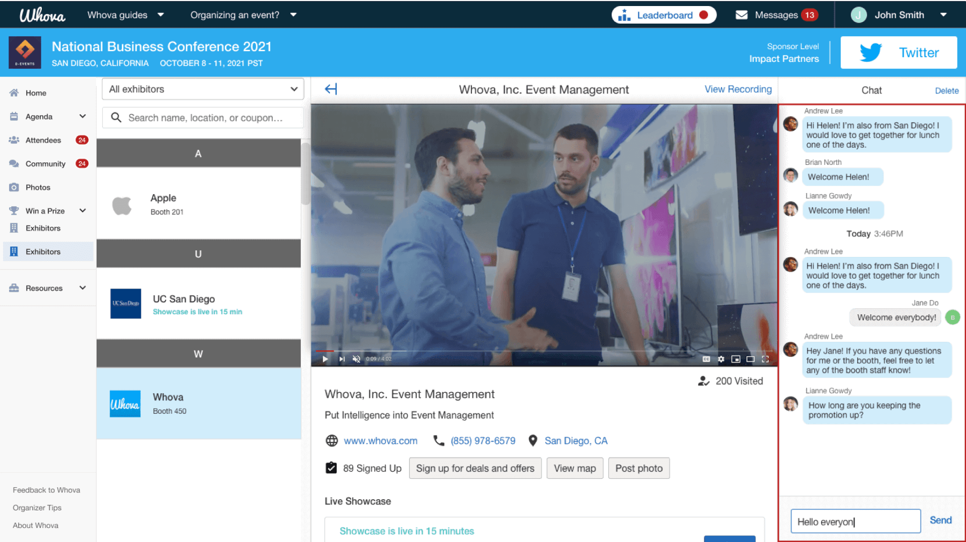 See who could visit your booth by viewing the event attendee list and messaging attendees
