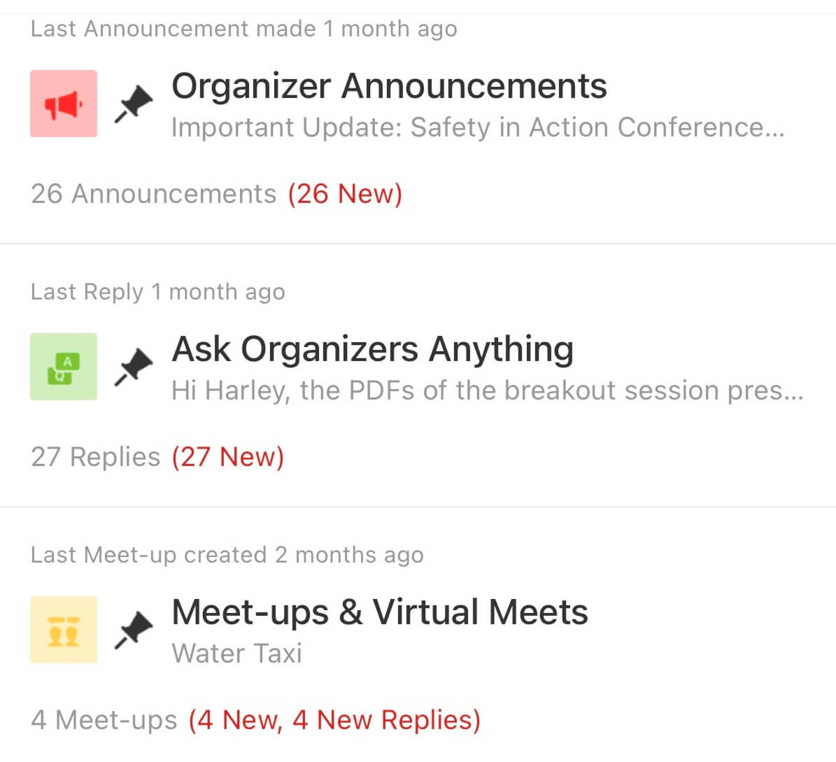 The Whova app enabled attendees to post comments, share photos, and engage with each other — features that were missing from DEKRA’s previous event app. Throughout the event, participants actively joined community board discussions, interacted with organizer announcements, and reacted to shared content in real time.