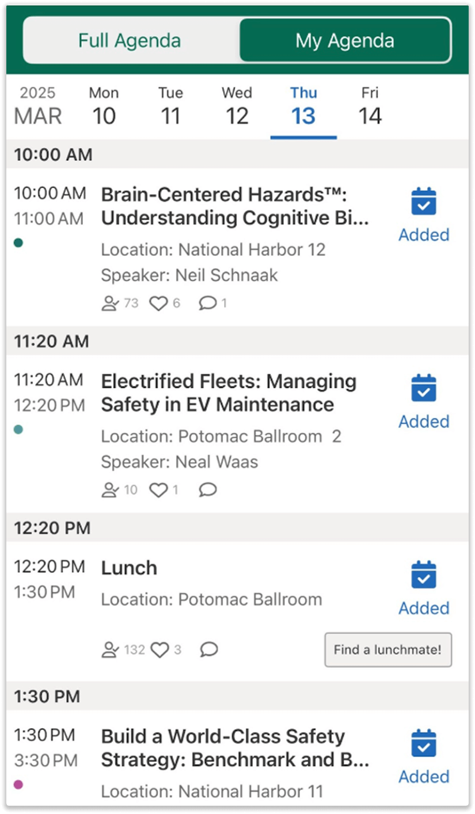 Whova’s Agenda Center offered DEKRA a seamless and intuitive interface for setting up their event schedule. Organizers could easily create a clear, organized view of all their 70 sessions, grouping by day and including concurrent sessions or subsessions. The system also supported role-based access, allowing their team members to be assigned specific responsibilities and manage different parts of the agenda independently.