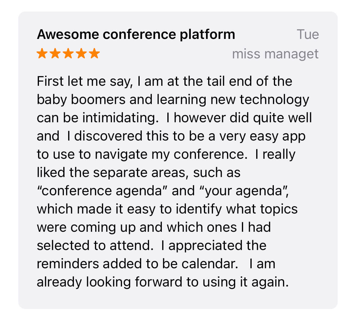 I will recommend the app to other conferences I attend.