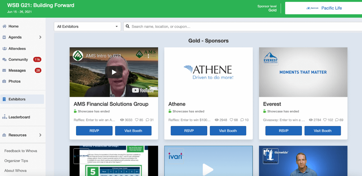 WSB is a community of financial professionals with a mission to build financial literacy and provide a reliable system to improve the financial service industry. WSB is an organization comprised of over 60,000 individuals associated with World Financial Group Insurane Agency, Inc. and World Financial Group, Inc. Their ambitious 30 by 30 financial literacy campaign will financially educate 30 million families by 2030. With Whova’s assistance, the organizers supported important sponsors and helped them gather valuable leads.