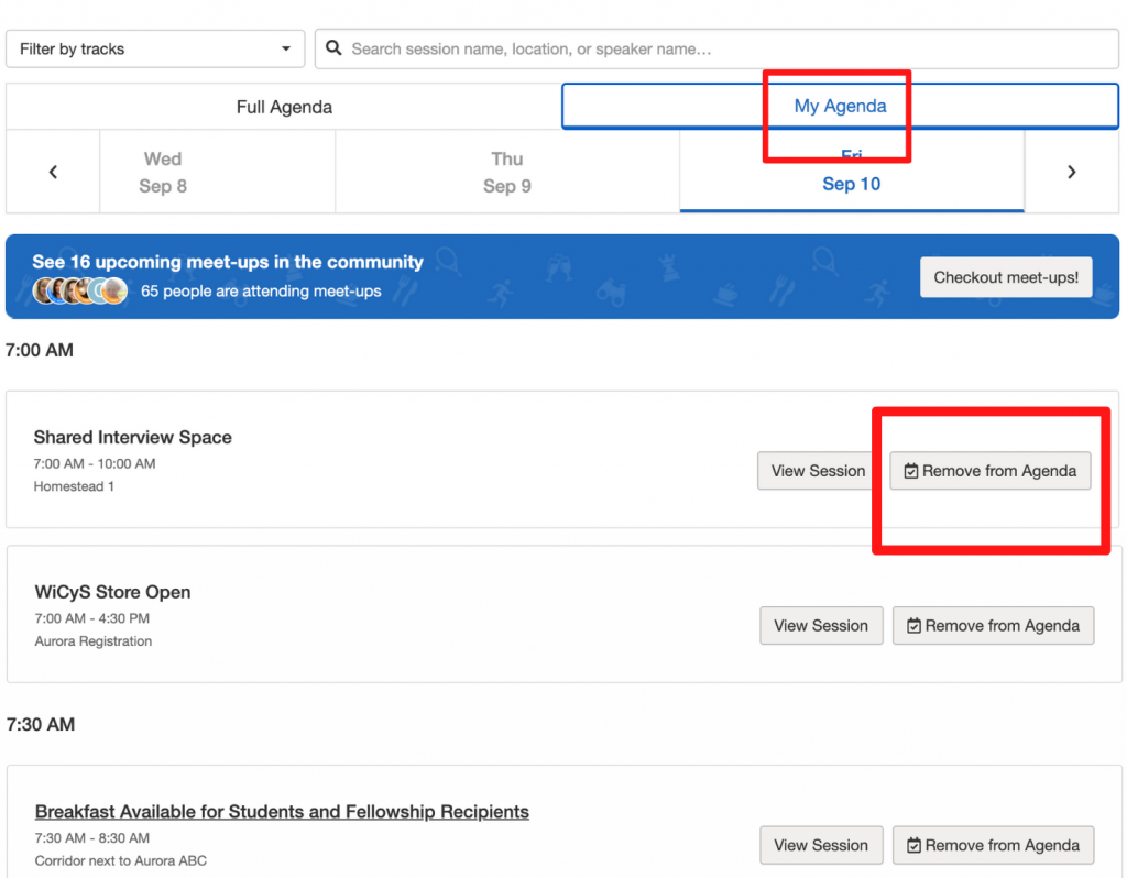 Attendees could add and remove sessions from their personal agendas