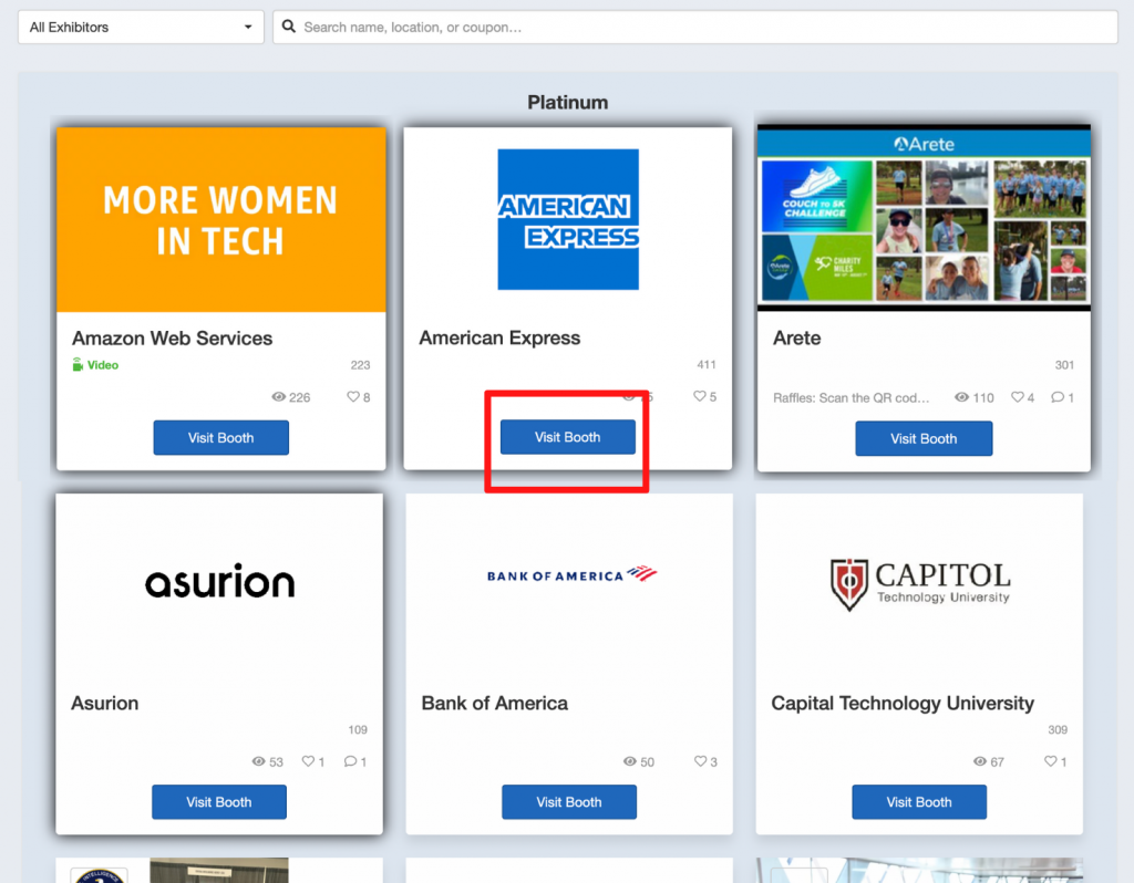 Gathering leads was especially simple: sponsors could easily scan the QR codes on attendee name badges in order to gather contact information, or attendees could be recorded as leads when they interacted with the digital booth by liking it or participating in promotions.