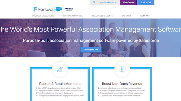 Fonteva for Associations, built on the Salesforce platform, combines the power of a Customer Relationship Management platform with association management capabilities. This is a powerful choice for associations with a large membership database as it allows you to effectively manage your members while leveraging other functionalities, including payments, event planning, and real-time data.
