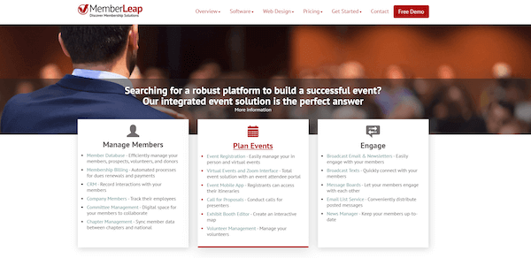 MemberLeap is an all-in-one solution that combines membership management, event registration, and communication tools for streamlining association processes. The platform’s comprehensive suite of features ensures you can manage various aspects of your operation within a unified ecosystem. This makes MemberLeap a preferred choice for organizations looking to combine multiple functionalities in one tool.