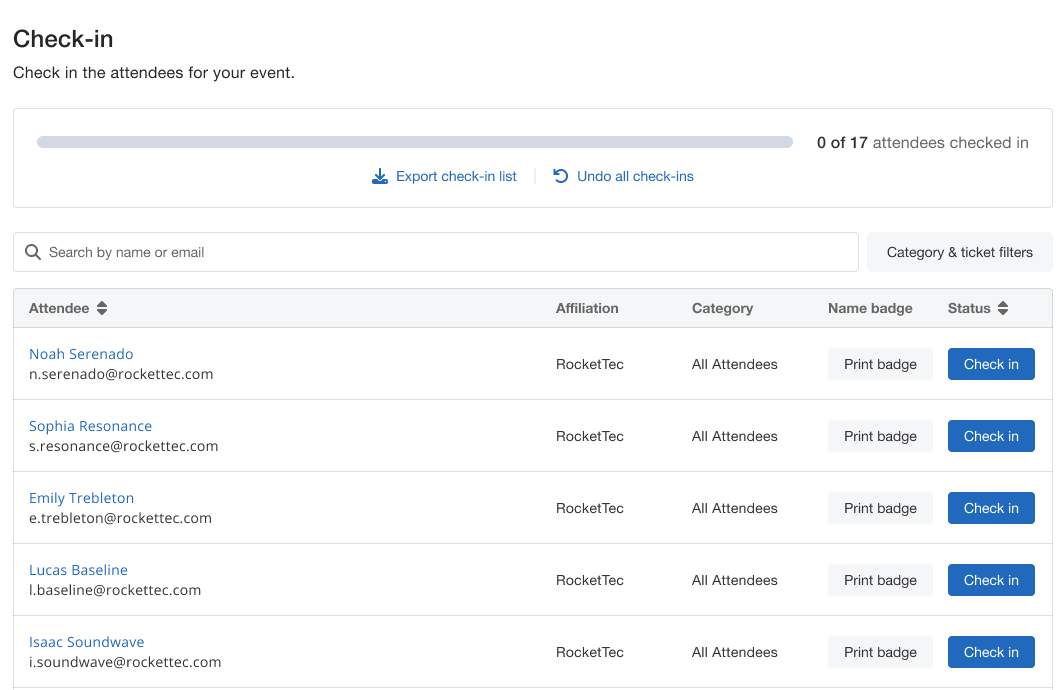Both processes are efficient and streamlined. Staff members can easily filter attendees by ticket type or category for faster processing, and attendees can check themselves in using an organizer’s device or by simply scanning a QR code.