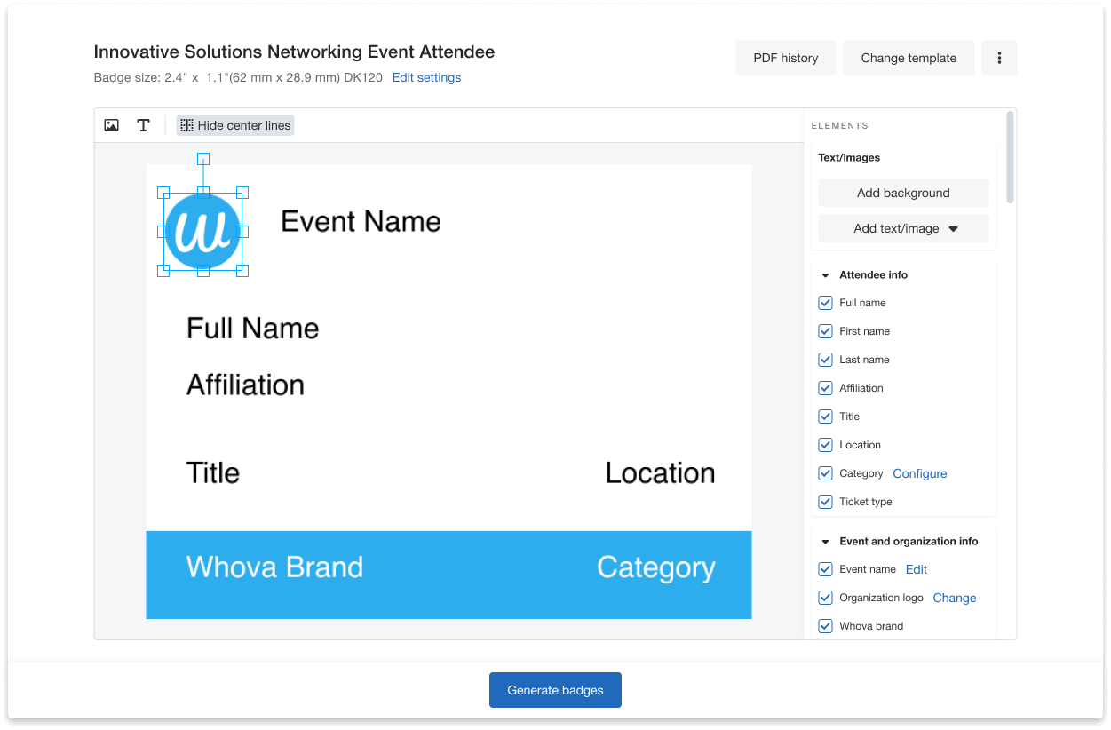 Choose from a variety of templates or customize the name badges’ appearance yourself.