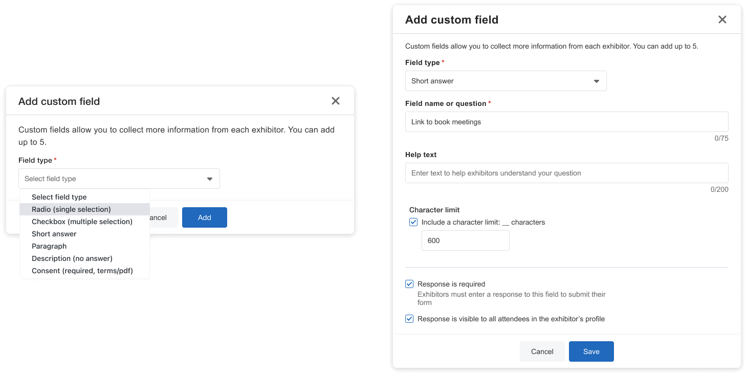 Add custom data fields to your exhibitor / sponsor forms