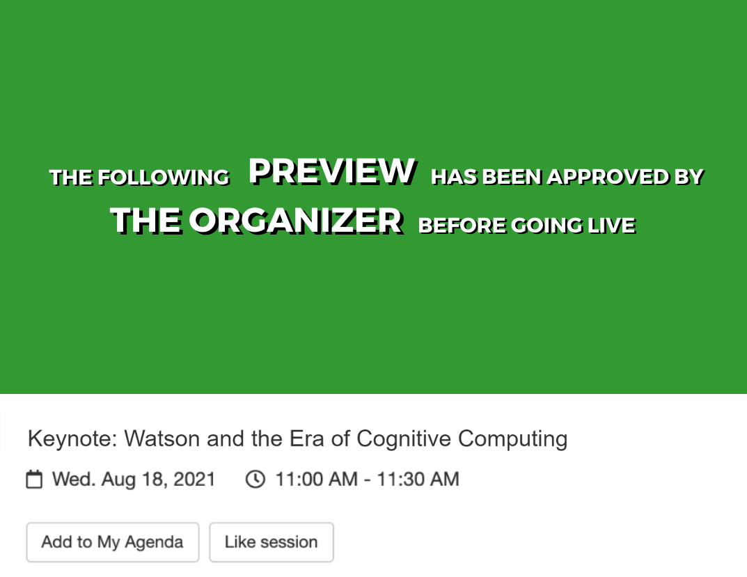 Whether it’s attracting attendees with session previews or conducting “backstage” tests before broadcasting, bring higher production value to live sessions with full control over when and how your session goes live.