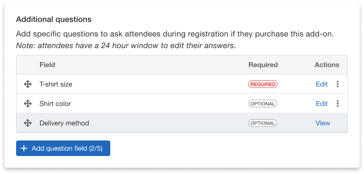 Add-ons, such as meal options or merchandise orders, frequently require additional information from attendees to ensure their preferences are met. In the past, organizers had to include these questions within the ticket purchase process or contact attendees individually, a method that proved cumbersome for both parties.