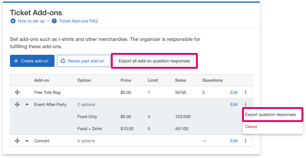In addition, question form answers can be easily exported separately and used to coordinate add-on related logistics. Whether you’re offering exclusive VIP experiences, optional workshops, or meal tickets, you can now collect all the necessary information in one seamless step.