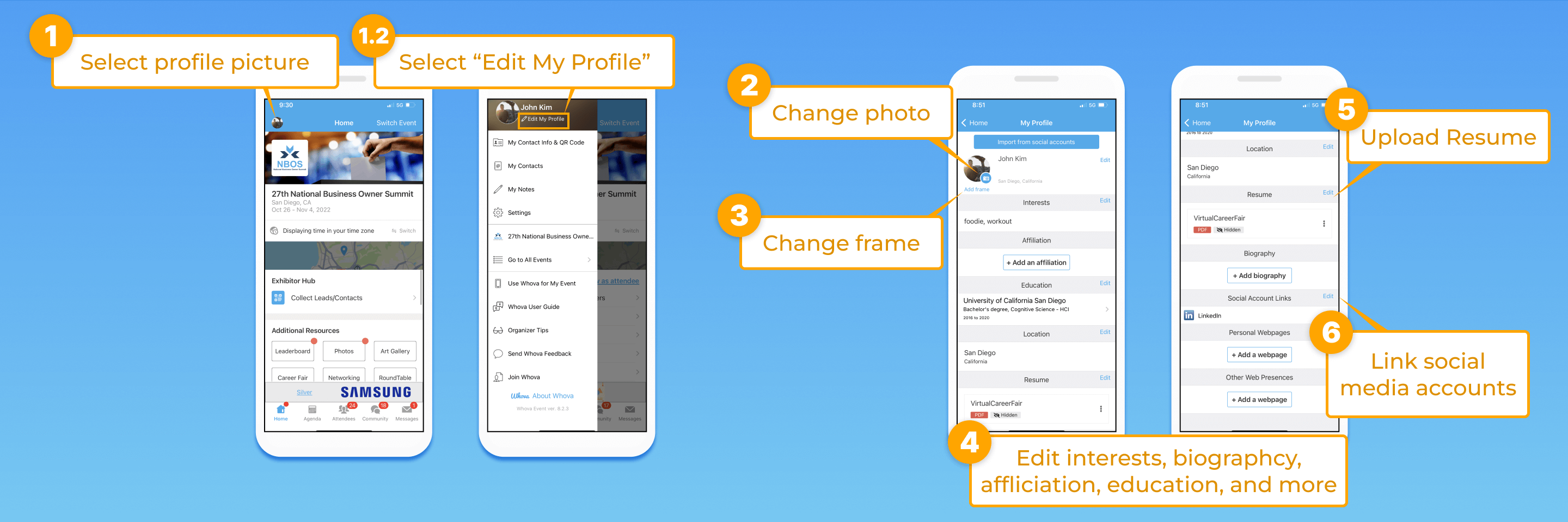 Setting up your personal profile in the Whova app is the first step for a great networking experience at your event.
