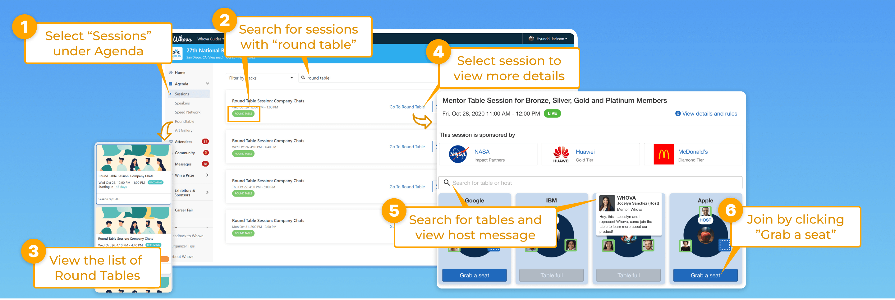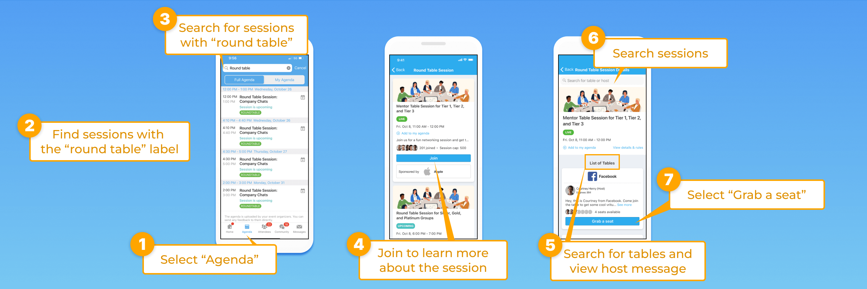 - Or search for round table sessions in the search bar at the top of the agenda. Type in keywords like “round table”.