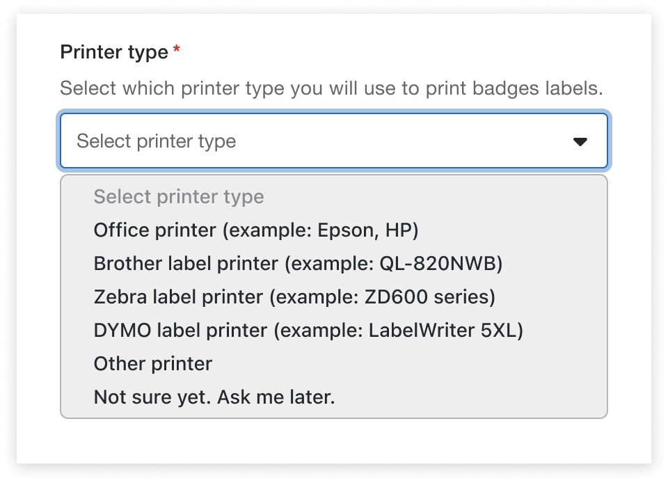 Zebra: Zebra is another popular name in the world of label printing, and their products don’t disappoint. Try utilizing them to print Whova’s Name Badges if you’re looking for a printer with quick, efficient printing, as well as an easy setup process. Zebra printers are usually more expensive than Brother printers. Whova now supports Zebra ZD621, ZD620 series, and ZD400 series models.