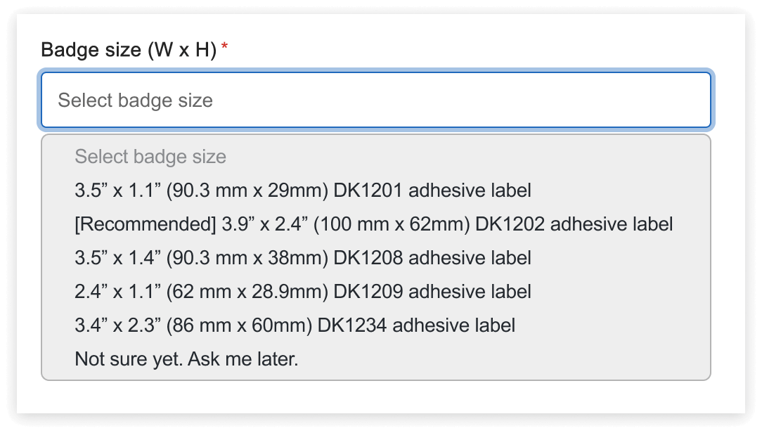 Select your badge size (with recommended settings)