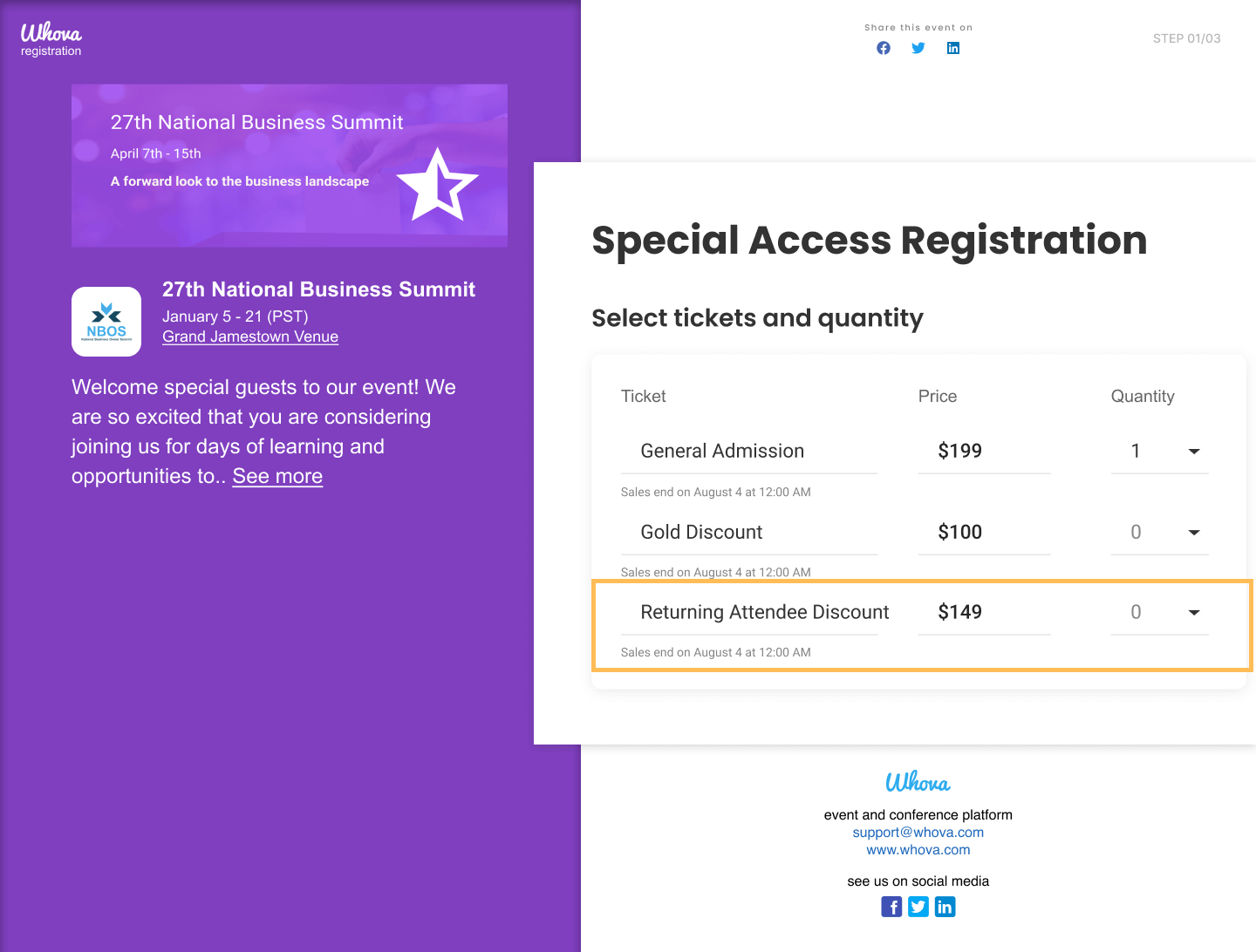 By leveraging these features, you can create a dedicated registration page for previous event attendees and send it to them directly via email campaign. You can even offer discounted ticket prices specifically for returning attendees.