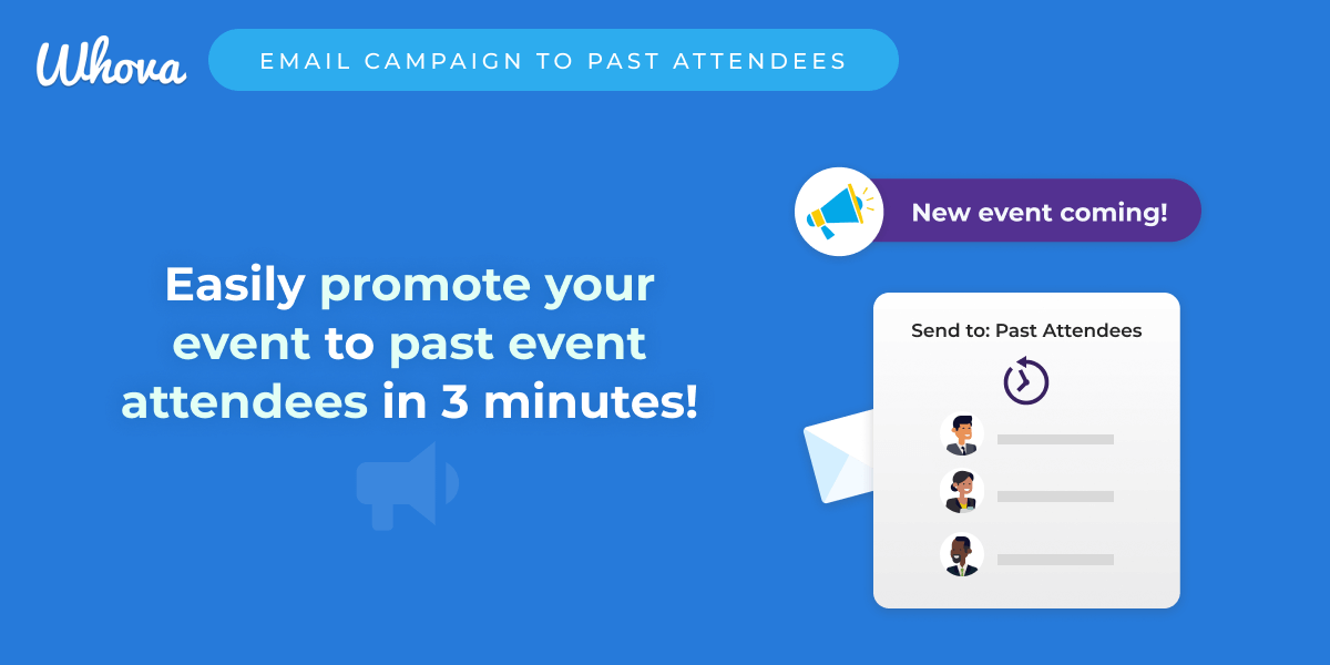 On that note, we are pleased to announce that if your upcoming event is using Whova registration, you can now easily promote your event to your past attendees. Specifically, you can send up to two email campaigns to those past event attendees to promote your upcoming event. This is an easy way to target that ideal audience segment, connect with them, and encourage them to participate in your event again.