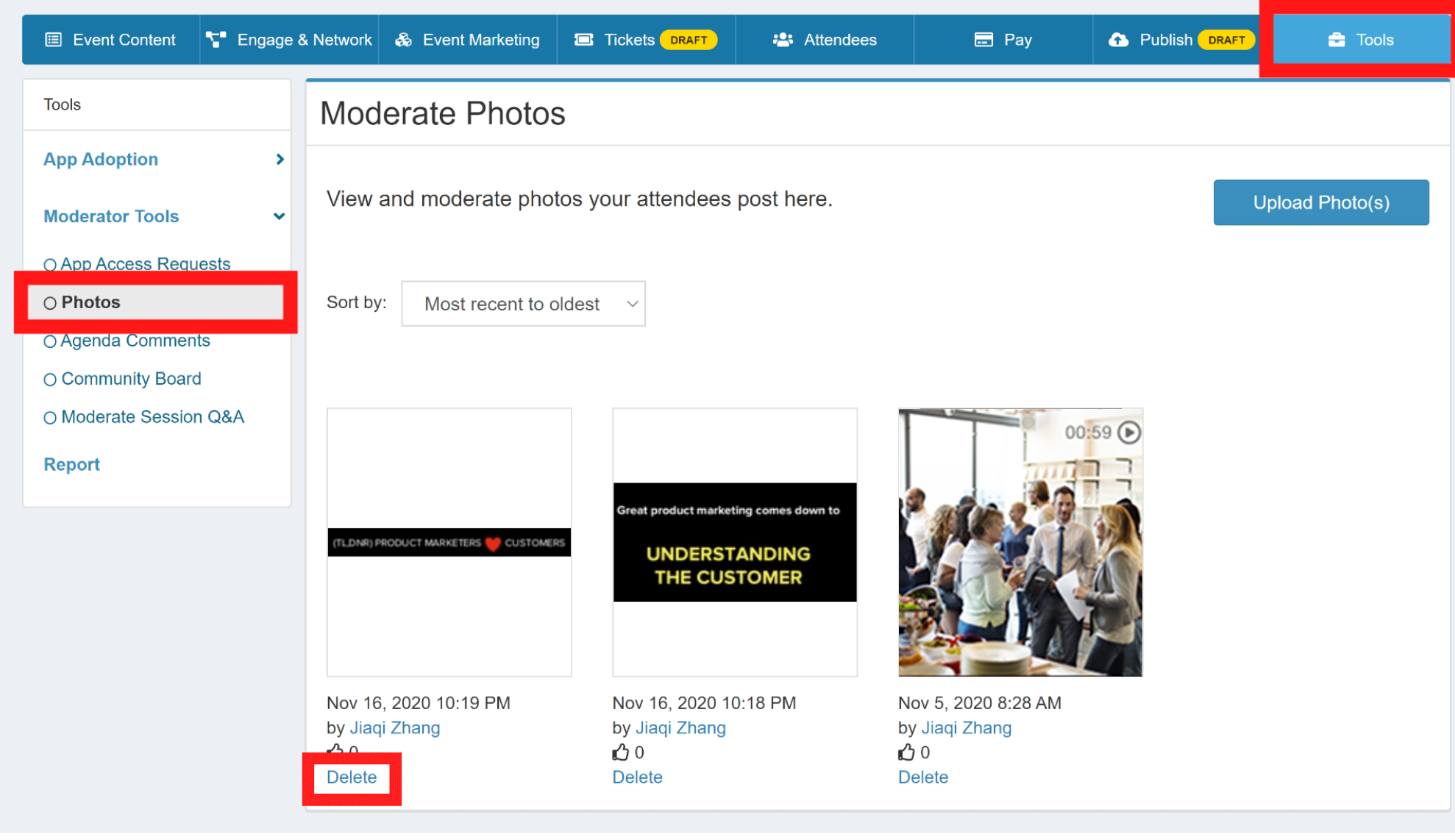 - On the left-hand sidebar, choose Moderator Tools, and then Photos.