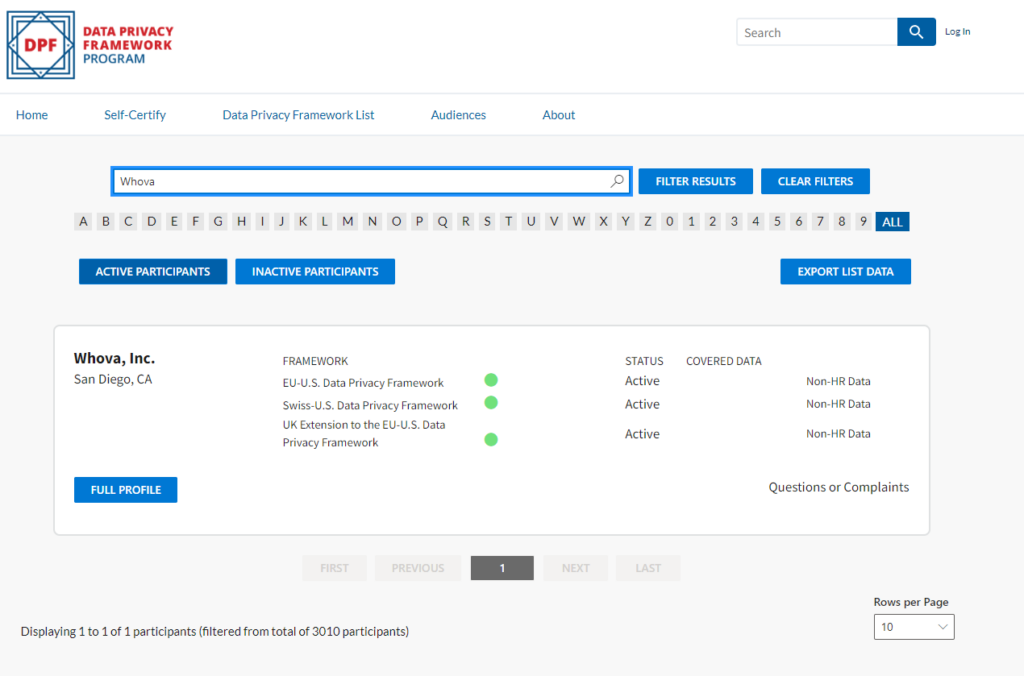 Our Data Privacy Framework certification means that for those in the European Union, information transferred to Whova will be handled with a high level of structured privacy protection. As Whova continues to support a growing number of in-person, virtual, and hybrid events for multinational organizations, achieving the Data Privacy Framework certification offers an extra layer of confidence for our global customers. This certification underscores our commitment to upholding strict data protection standards, ensuring that sensitive information is handled with the highest level of care.