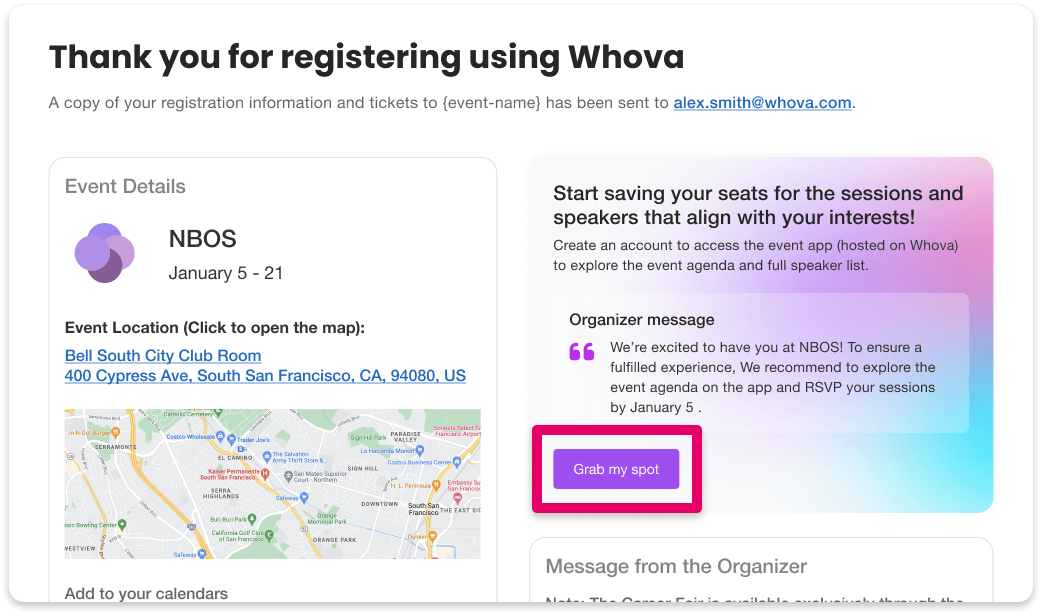 Once they register, attendees will be prompted to RSVP sessions directly from the registration portal. Organizers can include a custom message in the registration portal to motivate and remind attendees to select their sessions earlier.