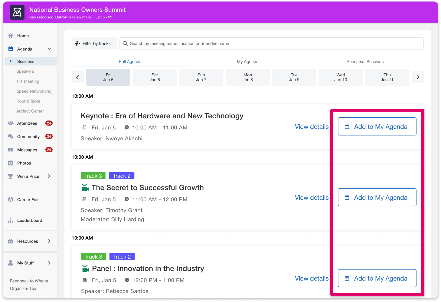 Contact your Whova representative or request a demo below to see how Session RSVP can enhance your event planning and execution.