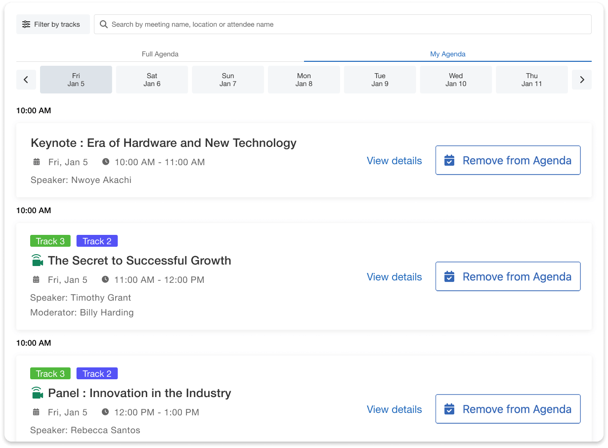 With direct integration with the agenda, attendees can plan their schedules well in advance. Attendees who RSVP will have a guaranteed seat, and those who didn’t will know beforehand and won’t be disappointed on the day of.