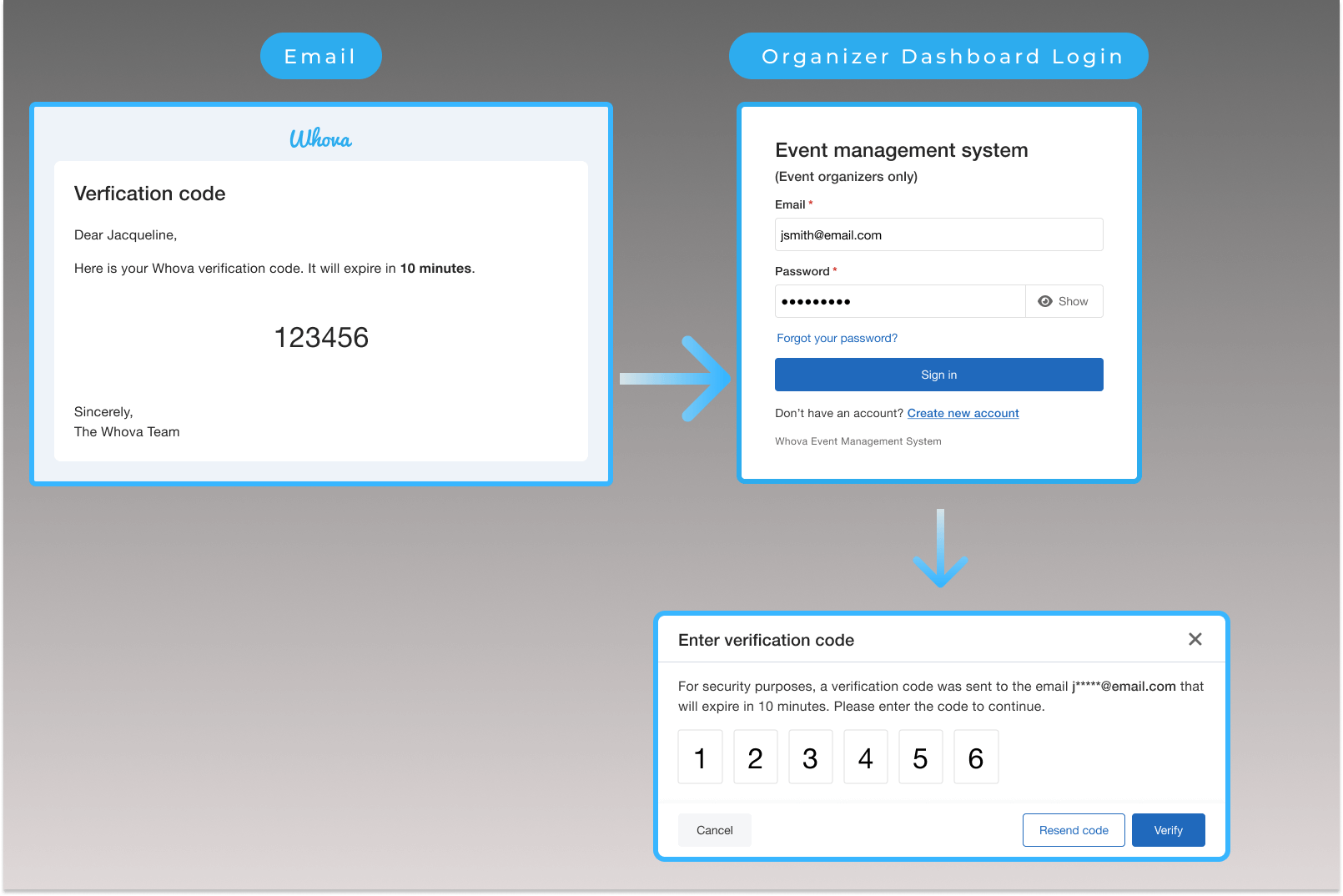Don’t worry, while this new enhancement does wonders for boosting security, this new method of entering the Whova dashboard is still extremely simple for you and your invited event admins. When you or other admins log in, a short verification code will be sent directly to the email address of whoever initiated the sign in for guaranteed safety.