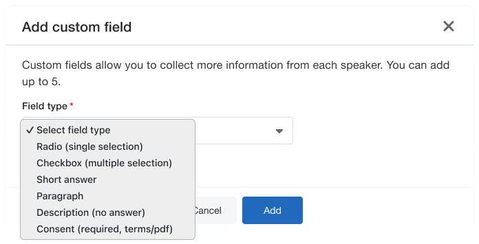 During the process of running your event, it is critical to obtain various permissions from your participants, set expectations up front, and build trust and transparency with them. Our new release of the Consent and Terms field that can be added into the speaker form, registration form, sponsor form, and exhibitor form can help you do just that. From obtaining media releases to specifying your ticket refund / cancellation policy, your event planning will become even easier!