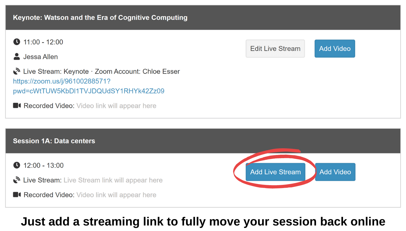 While the attendees won’t be there in person, you can still carry the session out as you had planned, just with a camera and computer livestreaming the experience in place of an in-person audience. If you were already planning on putting on a hybrid event and streaming sessions to remote attendees, all the links stay the same, meaning you don’t have to change anything!