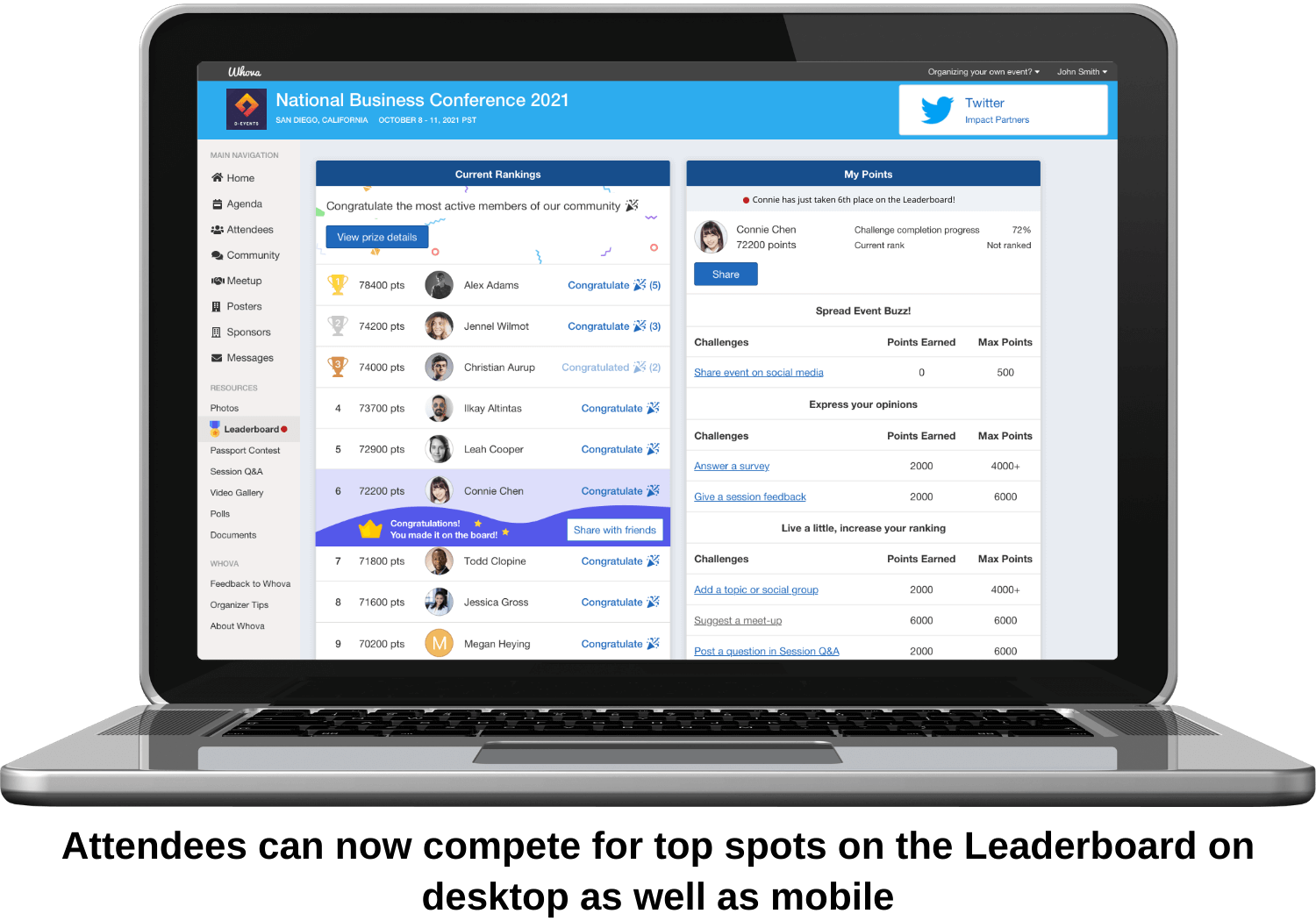 - Leaderboard contest: Attendees no longer have to be on mobile to get points for their engagement; whether they prefer desktop, or plan to switch back and forth at their convenience, their participation will be noted!