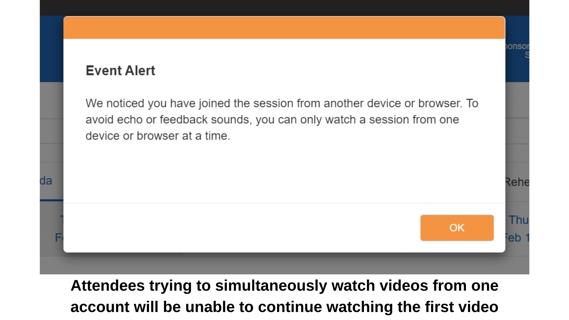 Prevent attendees from watching session streaming and video from multiple devices at once