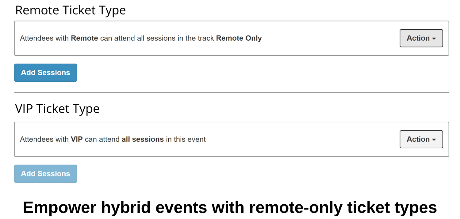You can also limit entire sessions to select ticket tiers, exciting and satisfying VIP attendees by giving them access to smaller, exclusive Q&As and talks with industry experts. Creating these private sessions is simple — just choose to make the sessions viewable only to specific attendees or designated ticket types.