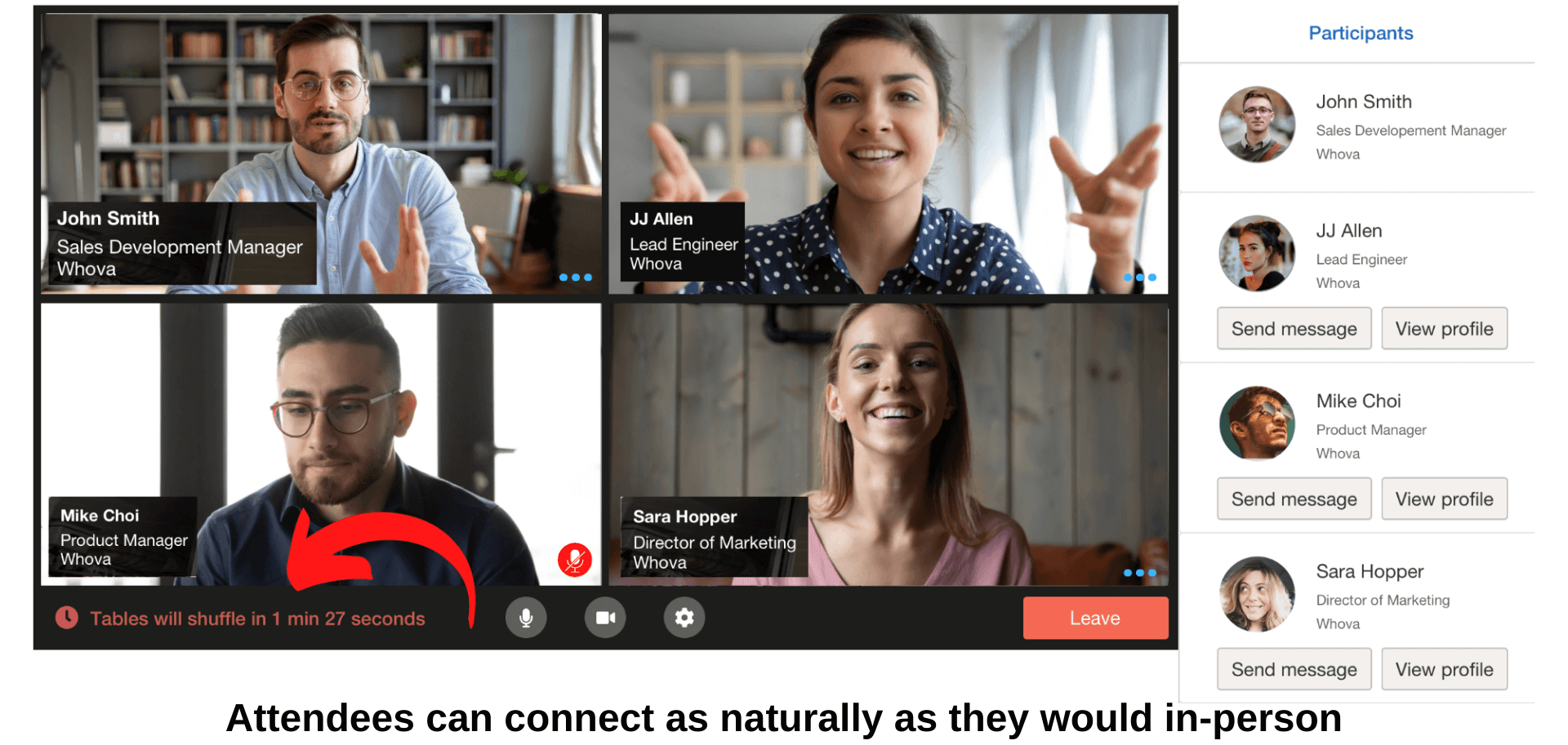 Organizers can choose to shuffle table occupants throughout the networking session to give attendees the chance to meet more people at the event. Choose what interval you want the tables to shuffle at — will this be a fast-paced “speed-dating” type of networking session, or do you want to give attendees plenty of time to get to know each other? It’s up to you!