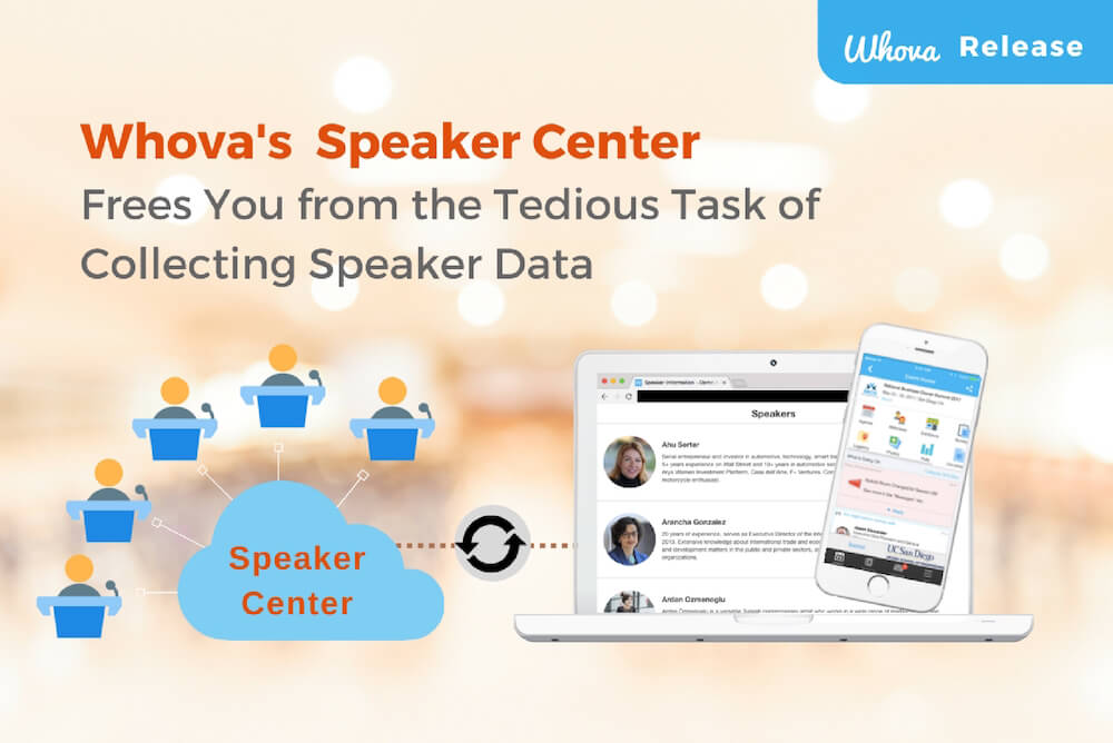 < Whova’s Speaker Center: a central place for event organizers to manage speaker information >
