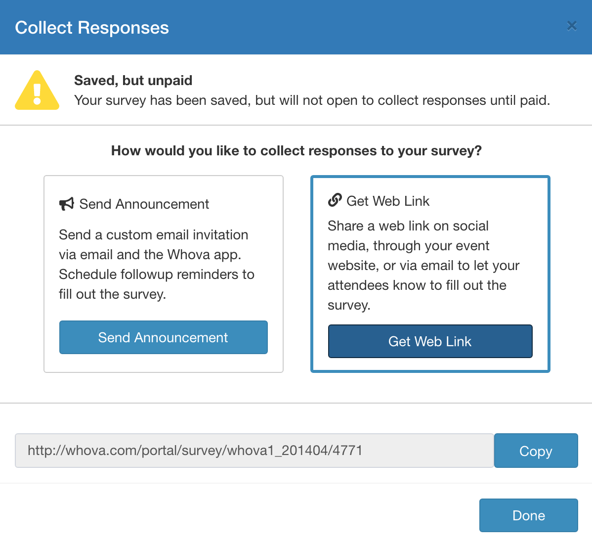 (The screen you’ll see after you finish creating an attendee survey.)