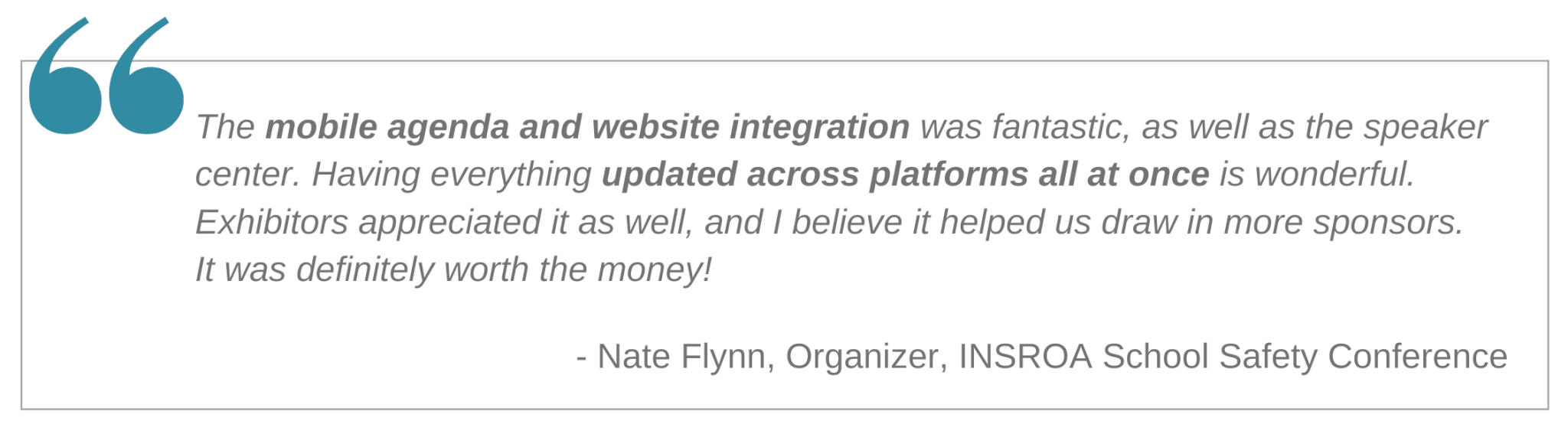 Costs saved: $3,900 for 500 registrants paying $1,000/ticket