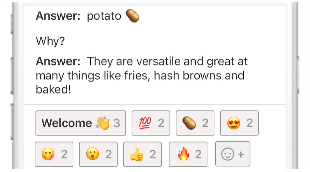 < Icebreaker in the Whova event app. Attendees can select a question to answer, which would lead to an interesting conversation with others >