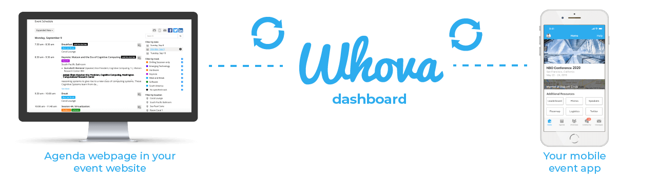 Some recent event management tools like the Event Website Builder automate time-consuming tasks, reduce human error, and ensure professional-looking results thanks to sleek templates. For example, you can transform complicated spreadsheets into color-coded multitrack agendas that can be easily inserted into your event websites and mobile web pages. Best of all, any updates in your dashboard will automatically sync with your websites as well as the Whova event app.