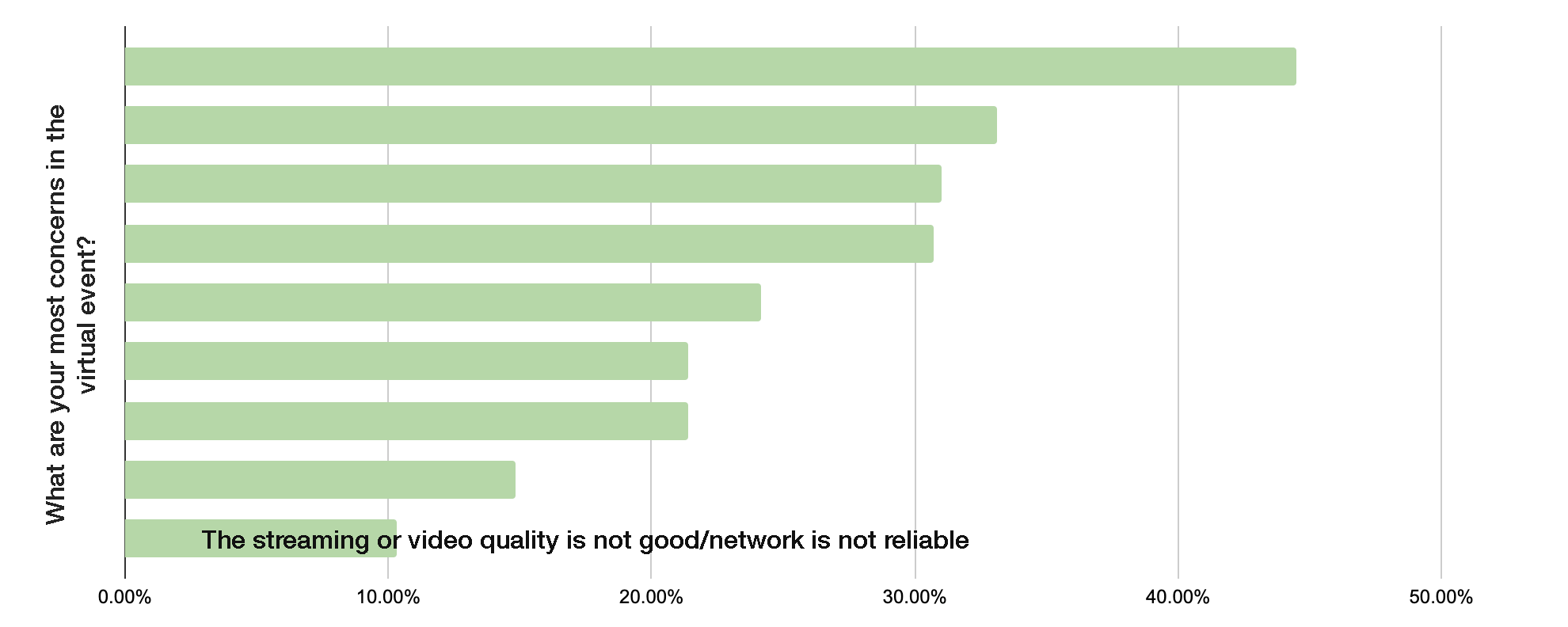 <Survey results show the network condition is attendees’ least concerned problem in a virtual conference>