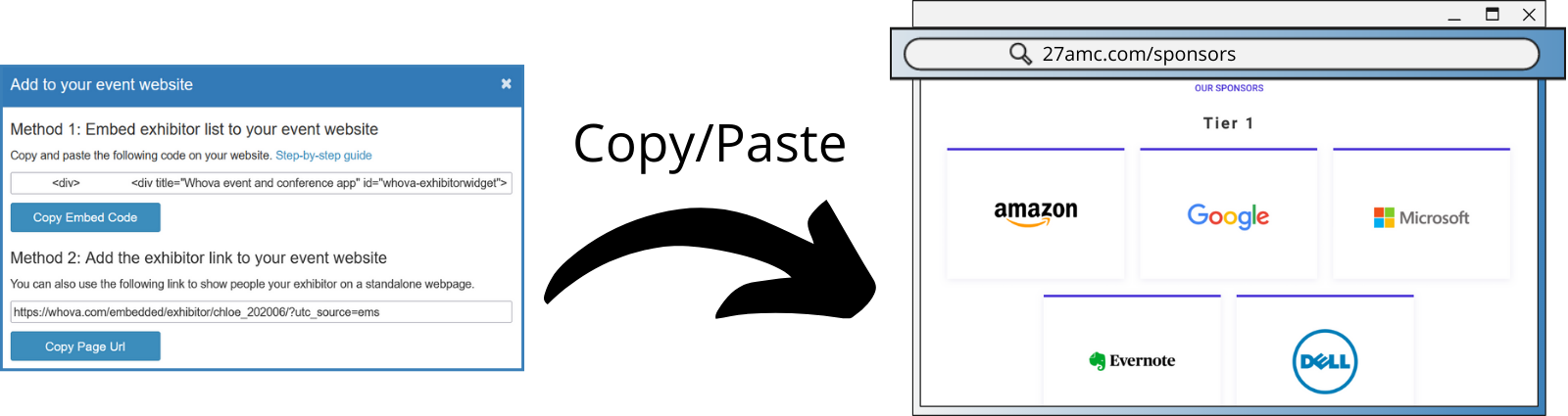 Easily embed your sponsor and exhibitor webpages to your own event website