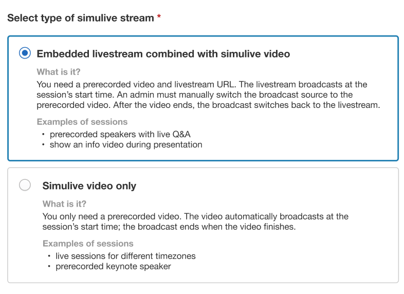 The simulive broadcast can be entirely pre-recorded for your convenience, but if you want to incorporate livestreamed portions for further engagement, it’s easy to do so. Just specify that you want to incorporate livestreamed elements, and you’ll be able to switch between the broadcast and livestream.